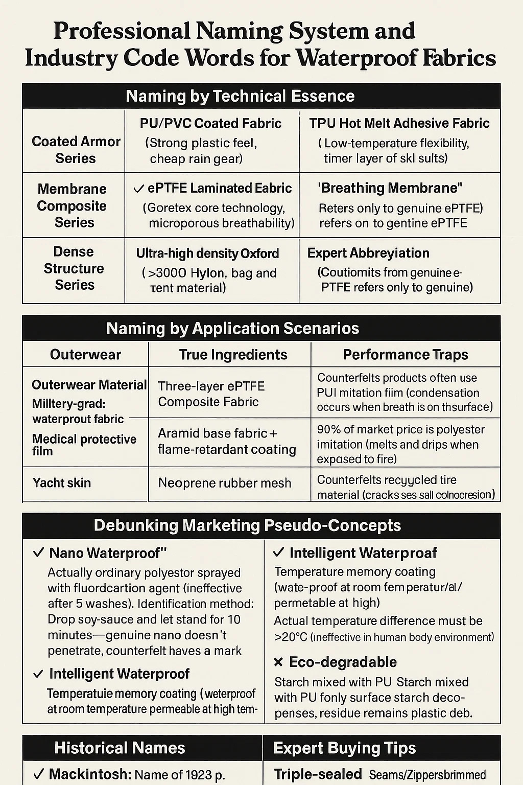 জন্য পেশাদার নামকরণ সিস্টেম এবং শিল্প কোড শব্দ জলরোধী কাপড়