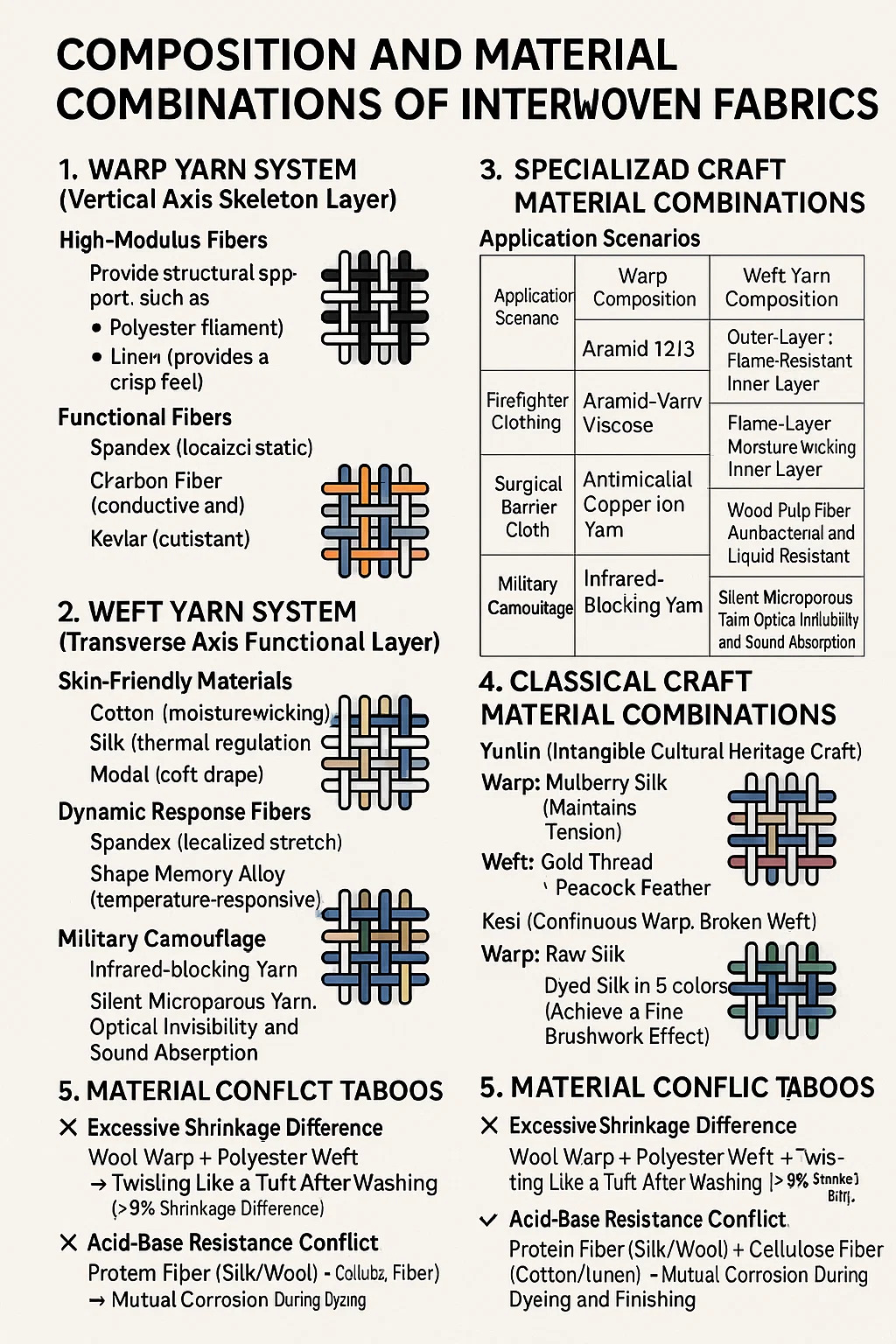 গোল্ডেন কম্প্যাটিবিলিটি নিয়ম: ওয়ার্প মেল্টিং পয়েন্ট ≥ ওয়েফট মেল্টিং পয়েন্ট 50°C (শেষ করার সময় মেল্ট-স্টিক প্রভাব এড়াতে)